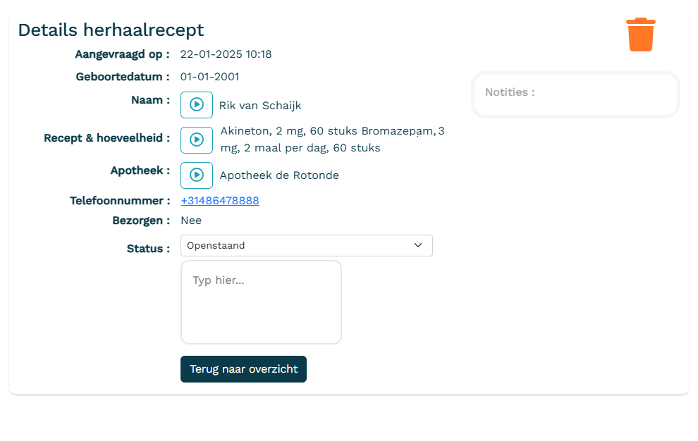 In onze pilotgroep is gebleken dat assistenten gemiddeld 91% van de herhaalrecepten niet meer hoeven uit te luisteren!