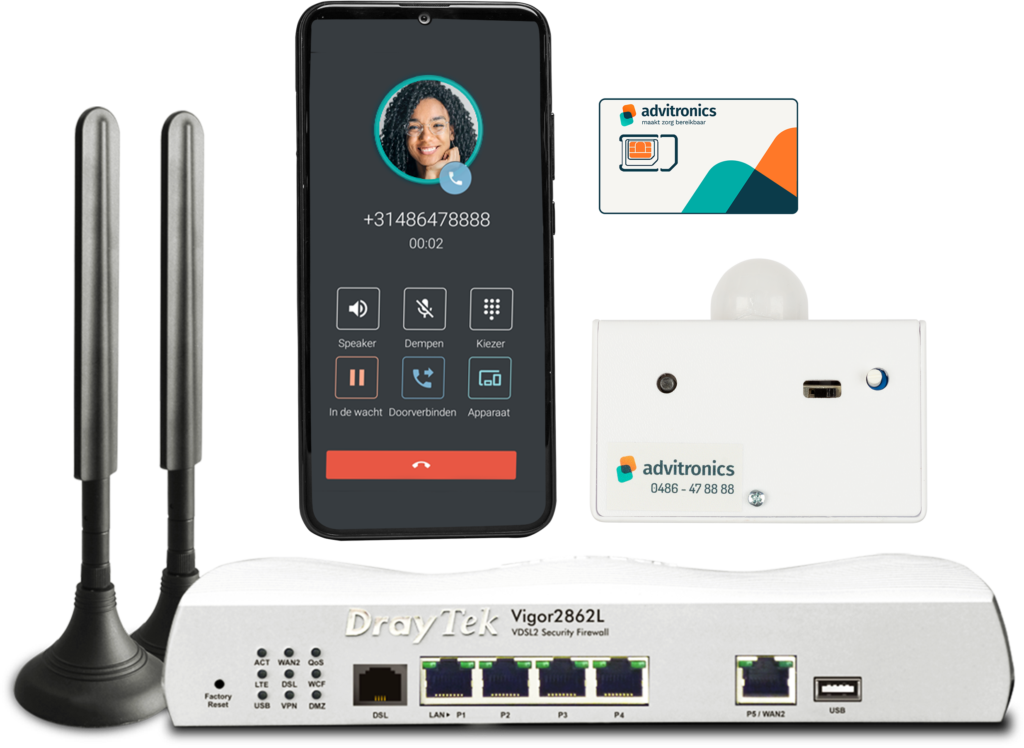Advitronics biedt u een compleet pakket voor uw spoedbereikbaarheid. Naast de spoedzoemer ondersteunen we u ook met een smartphone voor spoed inclusief de slimme inrichting daarvan en bieden wij een 4G mobiele back-up die bij internet verstoringen zorgt dat uw praktijk toch bereikbaar blijft.
